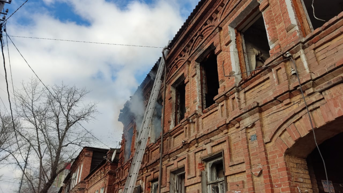 В 12:12 на пульт “01” поступил сигнал о возгорании в заброшенном двухэтажном доме по адресу ул.Посадского д.160 (между Вольской и Симбирской). Площадь пожара составила 15 кв.м. На его тушении работали три расчета.